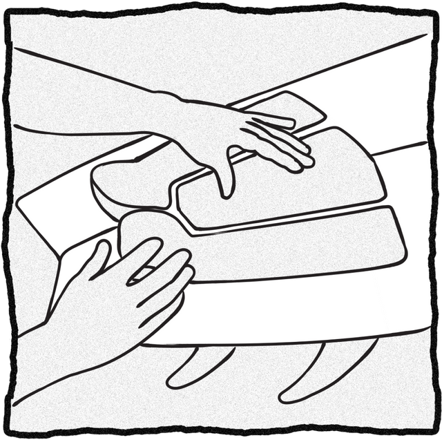 Step 6:Push down on the piece of traction pad from the centre outward to ensure no air is trapped. Repeat until you are confident it is firmly secured